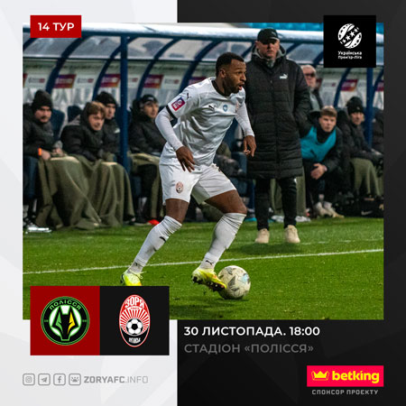 У неділю, 30-го листопада, в рамках 14-го туру УПЛ «Зоря» зустрінеться з «Поліссям».