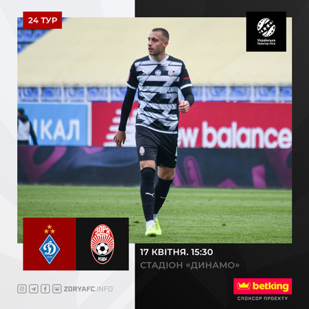 У п'ятницю, 17-го квітня, в рамках 24-го туру УПЛ «Зоря» зустрінеться з «Динамо».