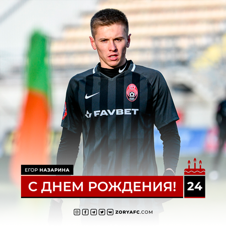 Сегодня отмечает свой 24-й день рождения полузащитник луганской «Зари» Егор Назарина.