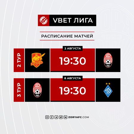 Во 2-м туре «Заре» предстоит сыграть на выезде с «Ингульцом». Эта встреча состоится в понедельник, 2-го августа. Начало матча – 19:30.