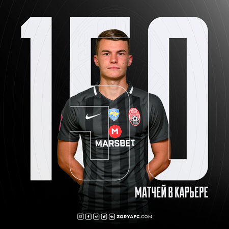 Матч 9-го тура УПЛ против «Днепра-1» стал 150-м в карьере для полузащитника луганской «Зари» Владислава Кочергина.
