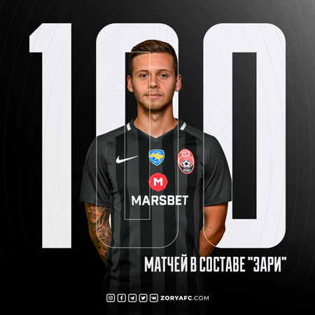 Полузащитник «Зари» Максим Лунев сыграл 100-й матч в составе луганского клуба.