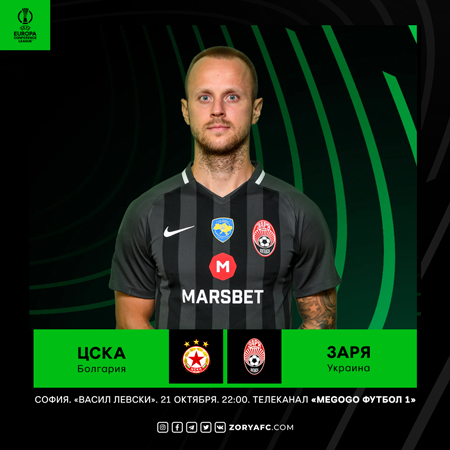 В четверг, 21-го октября, в рамках 3-го тура группового этапа Лиги Конференций луганская «Заря» встретится с болгарским «ЦСКА». Матч состоится в Софии на стадионе «Васил Левски».