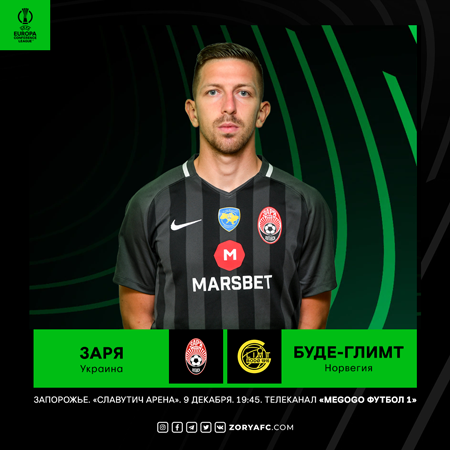 В четверг, 9-го декабря, в рамках 6-го тура группового этапа Лиги Конференций луганская «Заря» встретится с норвежским футбольным клубом «Буде-Глимт». Матч состоится в Запорожье на стадионе «Славутич Арена».