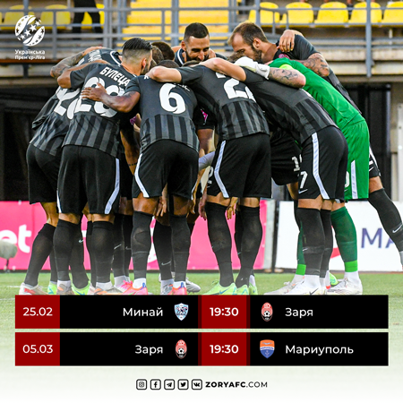 В 19-м туре в выездном поединке «Заре» предстоит встретится с «Минаем». Матч состоится в пятницу, 25-го февраля, и начнется в 19:30.