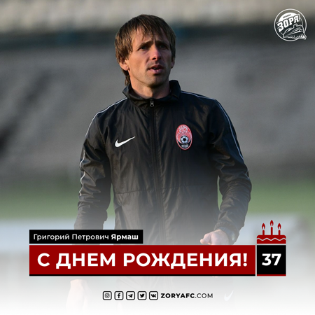 Сегодня свой 37-й День Рождения отмечает тренер по физической подготовке ФК «Заря» Григорий Петрович Ярмаш.