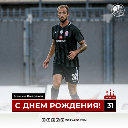 Сегодня отмечает свой 31-й день рождения защитник луганской «Зари» Максим Имереков.