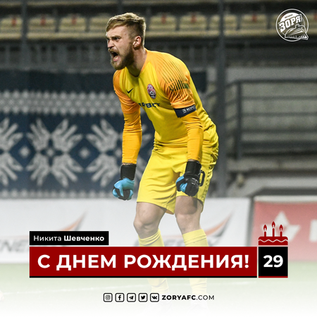 Сегодня свой 29-й день рождения отмечает голкипер луганской «Зари» Никита Шевченко.
