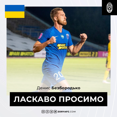 Нагадаємо, що Денис Безбородько вже виступав у складі «чорно-білих». Було це у сезонах 2015/16, 2016/17 та 2017/18. За «Зорю» зіграв 13 матчів та забив один гол.