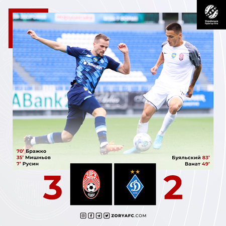 «Зоря» у рамках 3-го туру Прем’єр-Ліги зустрілася з київським «Динамо». Матч закінчився мінімальною перемогою луганчан з рахунком 3:2.