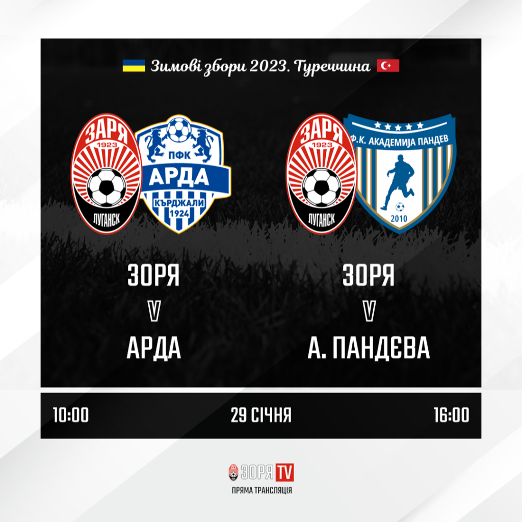 Сьогодні, 29-го січня, «Зоря» на навчально-тренувальних зборах у Туреччині провела два контрольних матча. Перша гра проти «Арди» закінчилася поразкою «чорно-білих», а у другому матчі проти «Академії Пандєва» луганчани здобули перемогу.