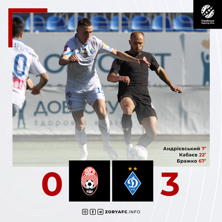 «Зоря» в перенесеному матчі 6-го туру Прем’єр-Ліги зустрілася з «Динамо». Матч закінчився поразкою луганчан з рахунком 0:3.