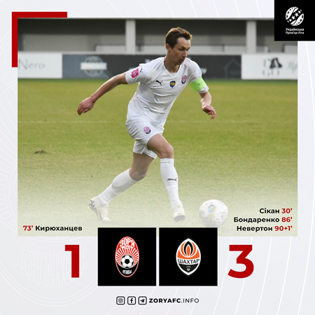 Голи: Кирюханцев Ігор 73 – Сікан Данило 30, Бондаренко Артем 86, Невертон 90+1.