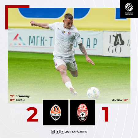 «Зоря» в матчі 25-го туру Прем’єр-Ліги зустрілася з «Шахтарем». Матч закінчився поразкою луганчан з рахунком 1:2.