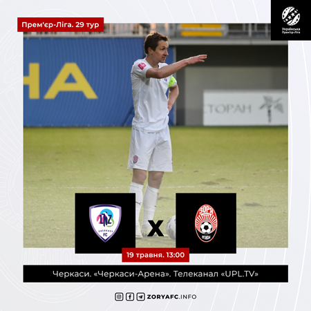 У неділю, 19-го травня, у матчі 29-го туру Прем’єр-Ліги «Зоря» зустрінеться з «ЛНЗ». Матч відбудеться в Черкасах на стадіоні «Черкаси-Арена».