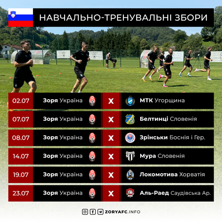 Стали відомі чотири суперники «Зорі» на зборі в Словенії.