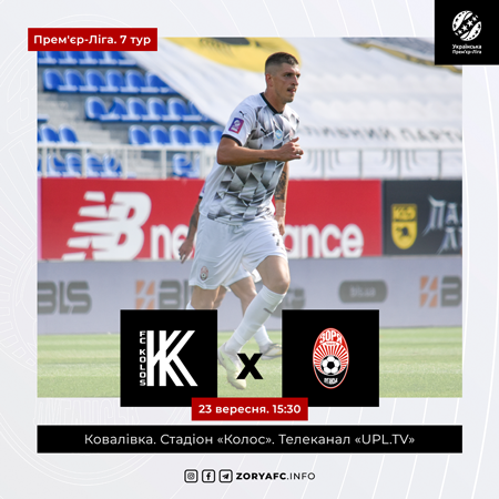 У понеділок, 23-го вересня, в рамках 7-го туру Прем’єр-Ліги «Зоря» зустрінеться з «Колосом». Матч відбудеться в Ковалівці на стадіоні «Колос».