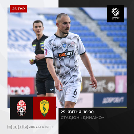 У п’ятницю, 25-го квітня, в рамках 26-го туру Прем’єр-Ліги «Зоря» зустрінеться з «Лівим Берегом». Матч відбудеться в Києві на стадіоні «Динамо» ім. В. Лобановського.