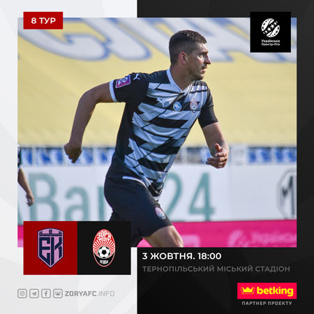 У п’ятницю, 3-го жовтня, в рамках 8-го туру Прем’єр-Ліги «Зоря» зустрінеться з «Епіцентром». Матч відбудеться у Тернополі на стадіоні Тернопільському міському стадіоні ім. Р. Шухевича.