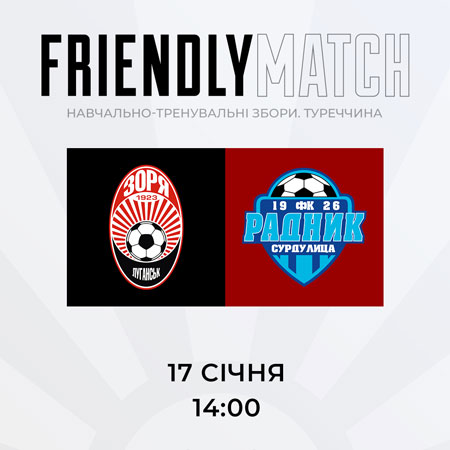 У суботу, 17-го січня, луганська «Зоря» проведе свій перший контрольний матч на навчально-тренувальних зборах в Туреччині з сербським футбольним клубом «Раднік». Початок матчу – 14:00.