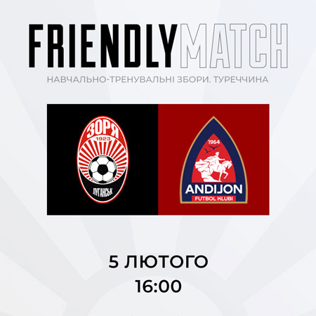У четвер, 5-го лютого, луганська «Зоря» проведе свій наступний контрольний матч на навчально-тренувальних зборах в Туреччині з узбецьким «Андіжаном». Початок матчу – 16:00.