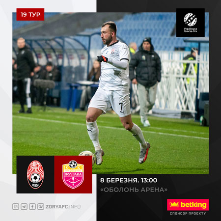 У неділю, 8-го березня, в рамках 19-го туру Прем’єр-Ліги «Зоря» зустрінеться з «Полтавою». Матч відбудеться у Києві на стадіоні «Оболонь Арена».