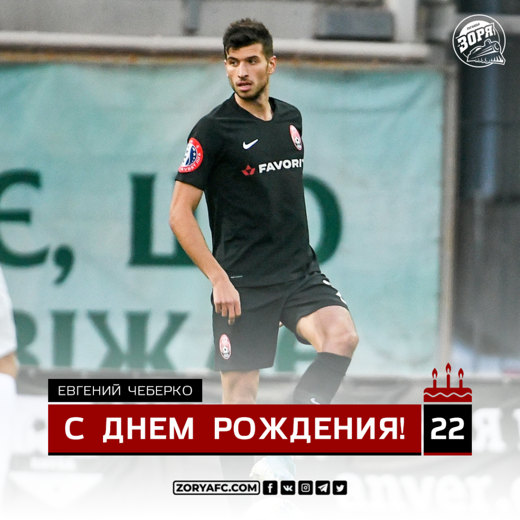 Сегодня свой 22-й День Рождения отмечает защитник луганской «Зари» Евгений Чеберко.