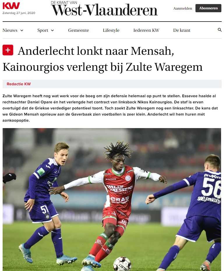 Согласно информации De Krant van West-Vlaanderen, приоритетной целью на трансферном рынке для «Андерлехта» ныне является 21-летний ганец Гидеон Менса. Сезон 2019/20, который в Бельгии приняли решение не доигрывать, африканец провел на правах аренды в «Зюлте-Варегеме». Контракт Менса принадлежит «Зальцбургу» и оценивается в 2,7 миллиона евро.