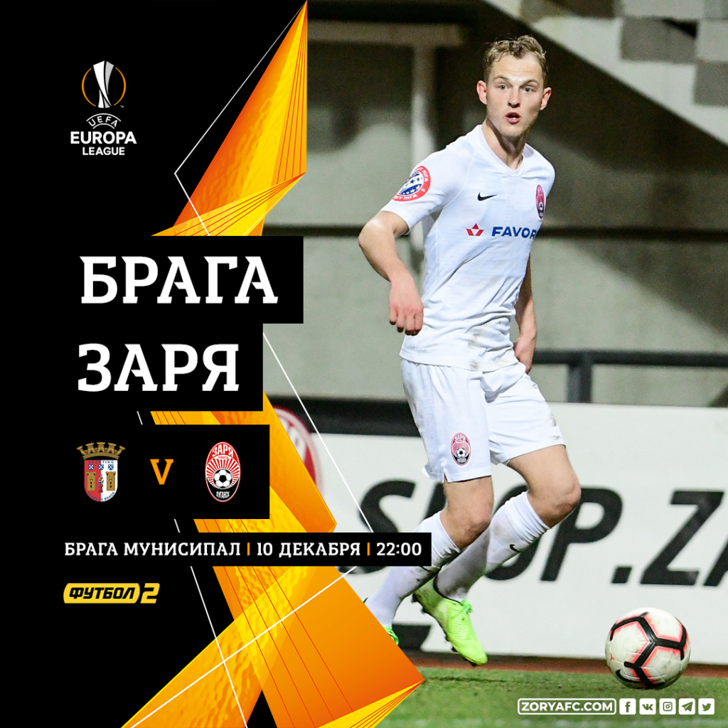 В четверг, 10-го декабря, в рамках заключительного тура группового этапа Лиги Европы луганская «Заря» встретится с португальской «Брагой». Матч состоится в Браге на стадионе «Брага Мунисипал».