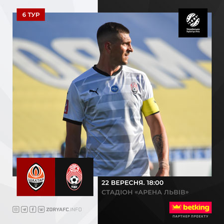 У понеділок, 22-го вересня, в рамках 6-го туру УПЛ «Зоря» зустрінеться з «Шахтарем».