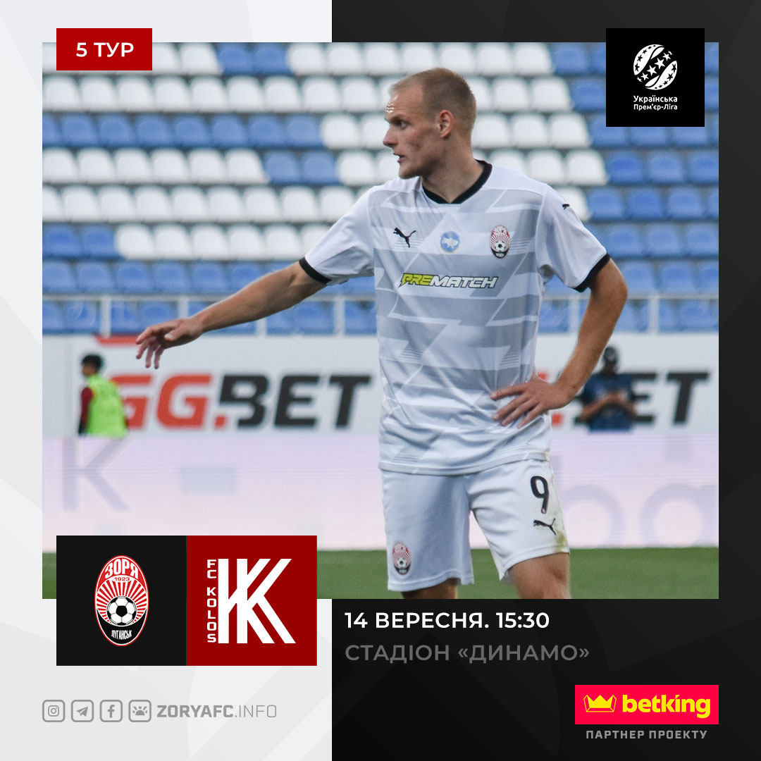 У неділю, 14-го вересня, в рамках 5-го туру Прем’єр-Ліги «Зоря» зустрінеться з «Колосом».