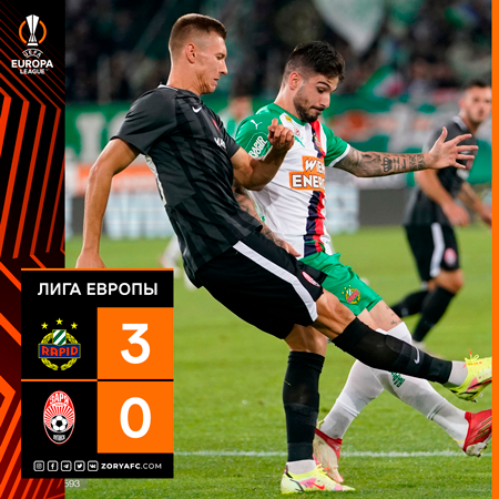 Луганская «Заря» в рамках плей-офф раунда Лиги Европы встретилась с австрийским «Рапидом». Матч закончился разгромным поражением луганчан со счетом 0:3.