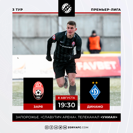 В воскресенье, 8-го августа, в рамках 3-го тура Премьер-Лиги луганская «Заря» встретится с киевским «Динамо». Матч состоится в Запорожье на стадионе «Славутич Арена».