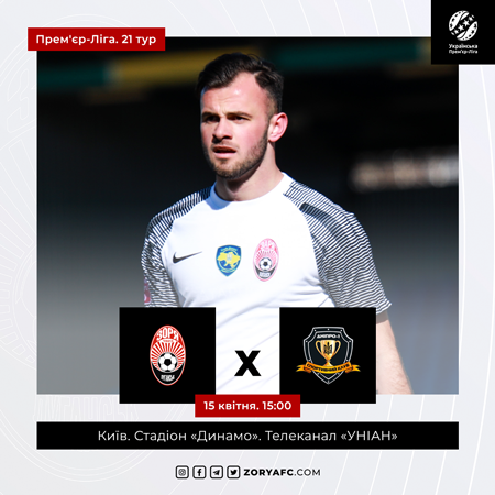 У суботу, 15-го квітня, в рамках 21-го туру Прем’єр-Ліги «Зоря» зустрінеться з «Дніпром-1». Матч відбудеться у Києві на стадіоні «Динамо» ім. В. Лобановського.