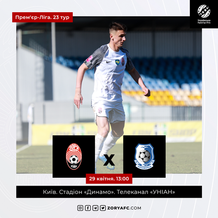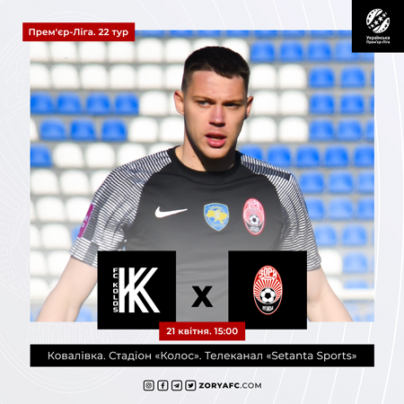 У п’ятницю, 21-го квітня, в рамках 22-го туру Прем’єр-Ліги «Зоря» зустрінеться з «Колосом». Матч відбудеться у Ковалівці на стадіоні «Колос».