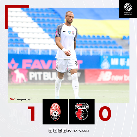 «Зоря» у рамках 24-го туру Прем’єр-Ліги зустрілася з «Вересом». Матч закінчився мінімальною перемогою луганчан з рахунком 1:0.
