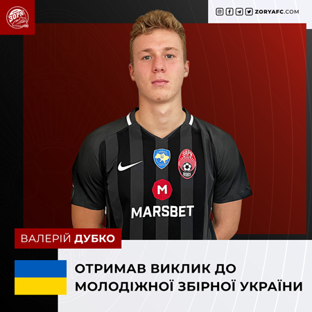Захисник луганської «Зорі» Валерій Дубко довикликаний до розташування молодіжної збірної України.