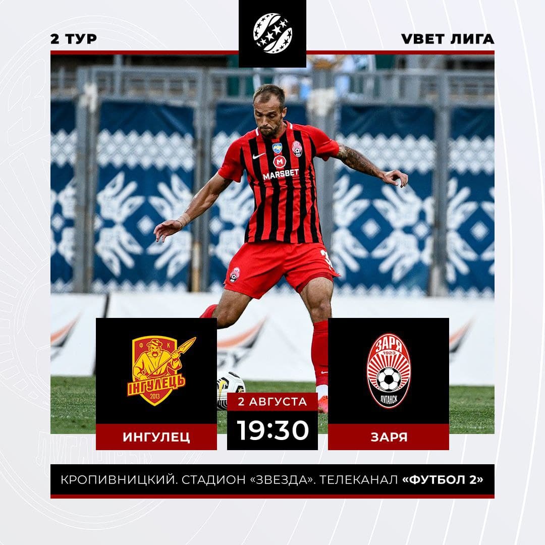 В понедельник, 2-го августа, в рамках 2-го тура Vbet Лиги «Заря» встретится с «Ингульцом». Матч состоится в Кропивницком на стадионе «Звезда».