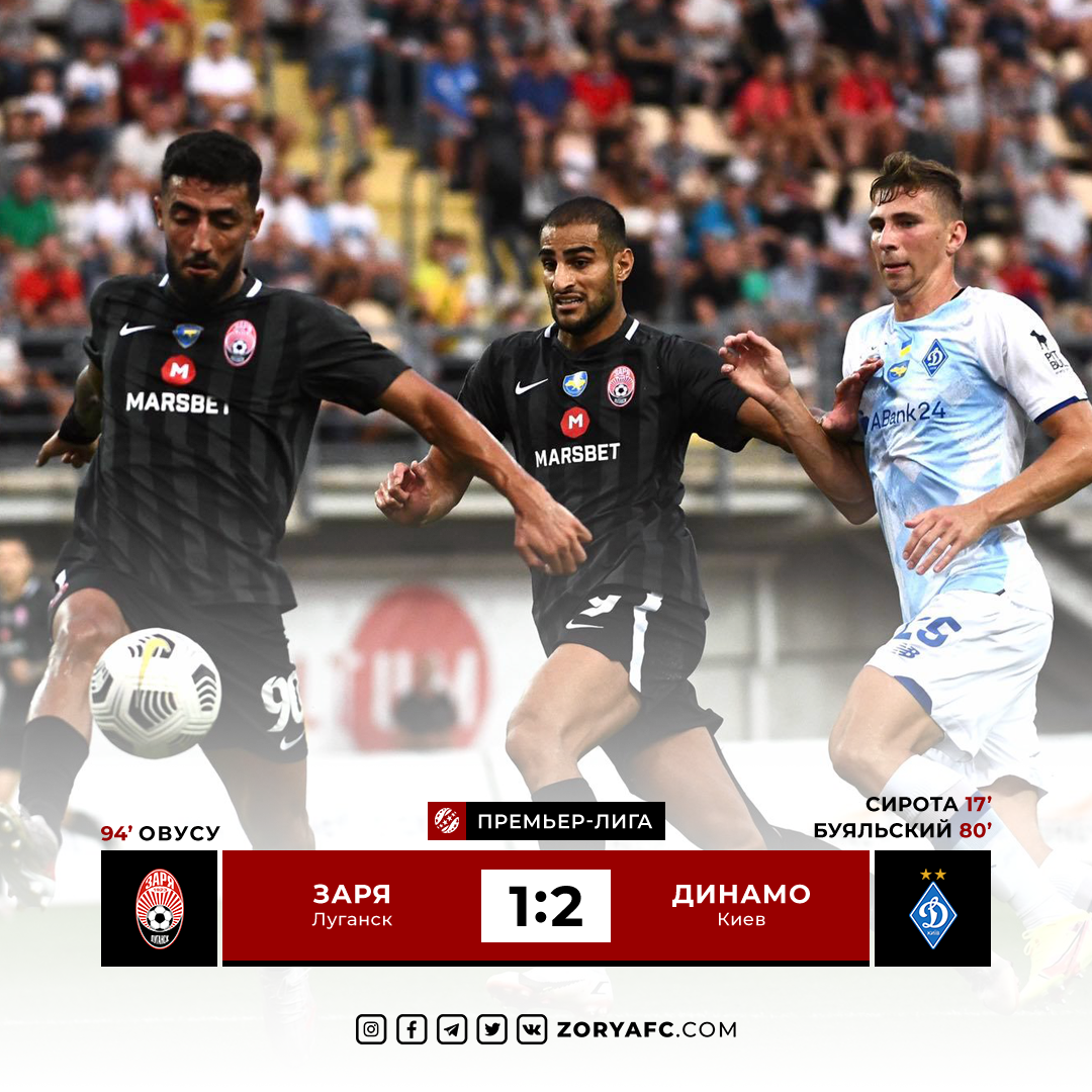 Только что завершился матч 3-го тура украинской Vbet лиги в котором луганская «Заря» уступила киевскому «Динамо» 1-2.