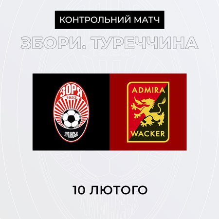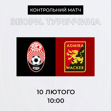 У понеділок, 10-го лютого, луганська «Зоря» проведе свій наступний контрольний матч на навчально-тренувальних зборах у Туреччині з австрійським футбольним клубом «Адміра Вакер». Початок матчу – 10:00. -