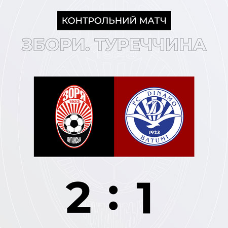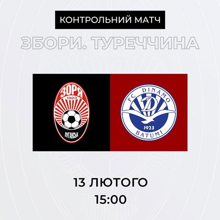 У четвер, 13-го лютого, луганська «Зоря» проведе свій останній контрольний матч на навчально-тренувальних зборах у Туреччині з грузинським футбольним клубом «Динамо» Батумі. Початок матчу – 15:00. -